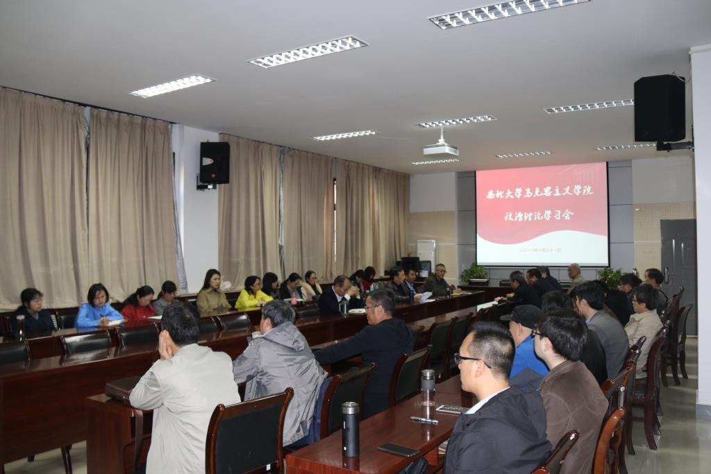 10月31日下午,马克思主义学院政治理论学习会在学院会议室召开,会议由学院党委书记马朝琦教授主持,学院全体教职工参加了此次学习会。