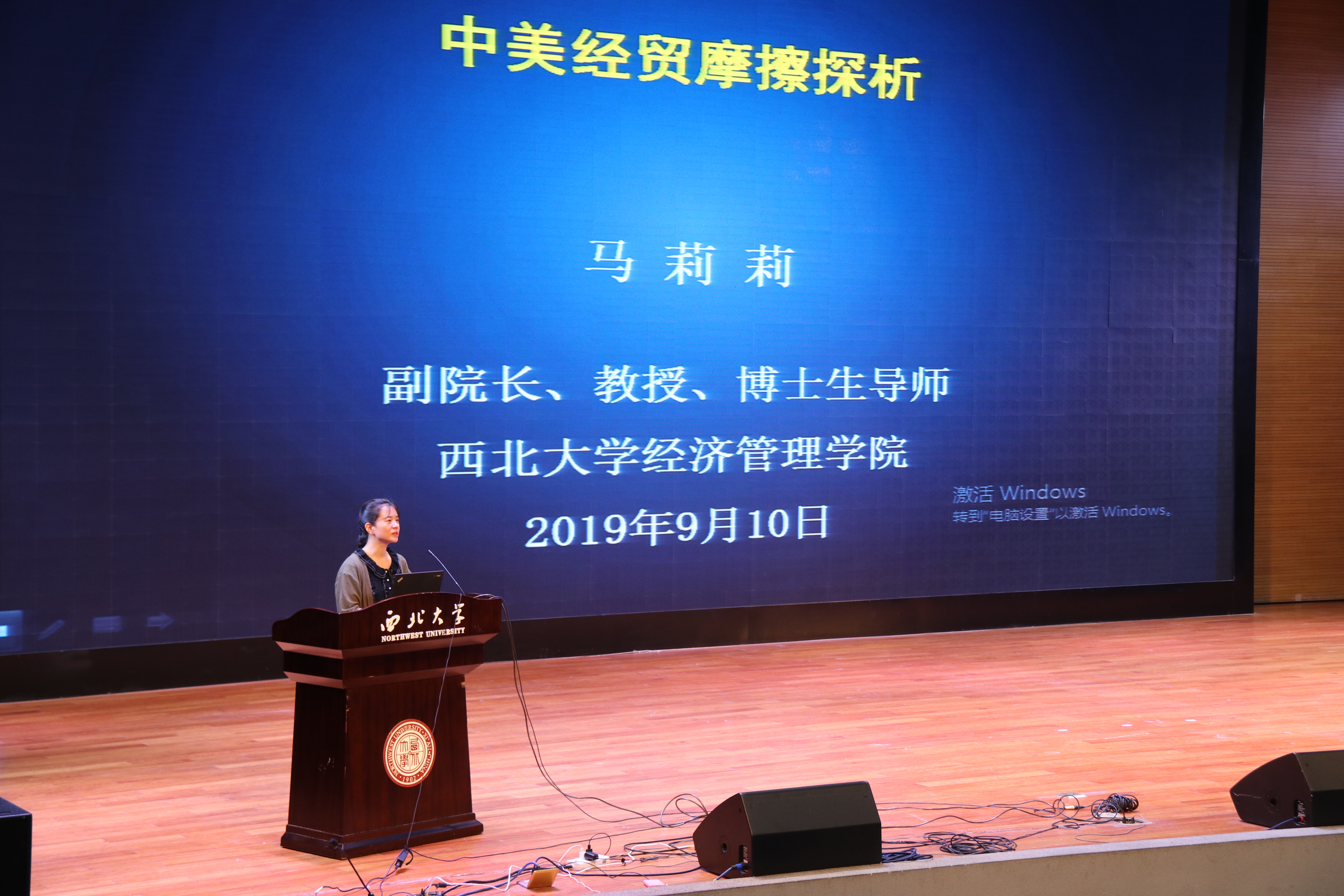 2019年9月10日下午,由我校马克思主义学院、学工部和教务处举办的终南思政论坛(第十期)形势与政策报告会在长安校区学生活动中心报告厅成功举行。西北大学经济管理学院副院长、博士生导师马莉莉教授做了“中美经贸摩擦探析”的报告。本次报告是我校为了推进新时代“形势与政策”课的教学改革,落实教育部关于“形势与政策”课规范开课,保证学生在校学习期间开课不断线的要求针对本科三、四年级学生举办的首场报告会,约600名长安校区三、四年级本科学生听取了报告。
